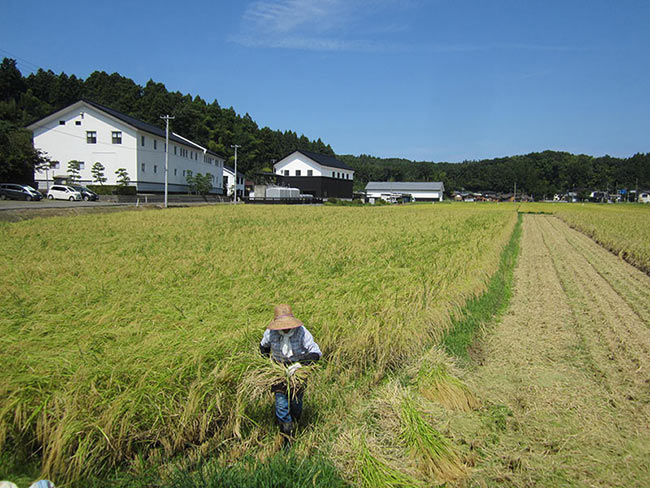 去る9月4日、酒蔵前の田んぼで”亀の尾“の稲刈りが行われました。