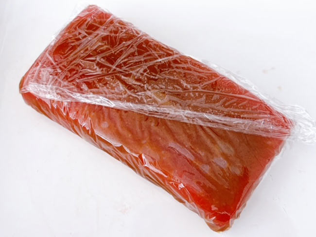 1./鮪は、醤油麹を全体にまんべんなく塗り、ラップで包んで冷蔵庫で2時間ほど置く。