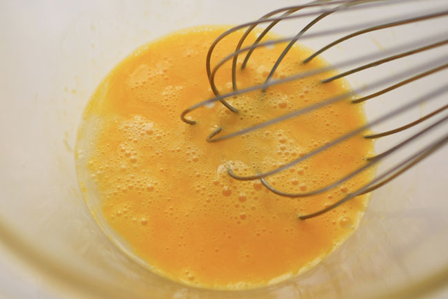 2./卵を割りほぐし、甘酒、薄力粉をよく混ぜる。