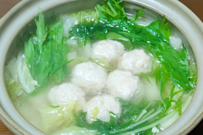 いつもの鍋料理に鶏ひき肉団子を加える。ポン酢タレに浸けて召し上がれ。