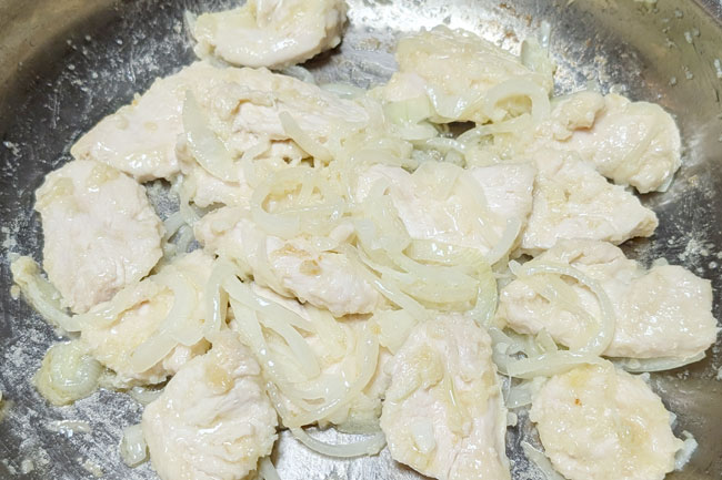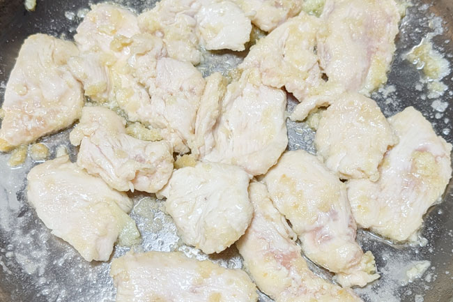 鶏むね肉を炒める