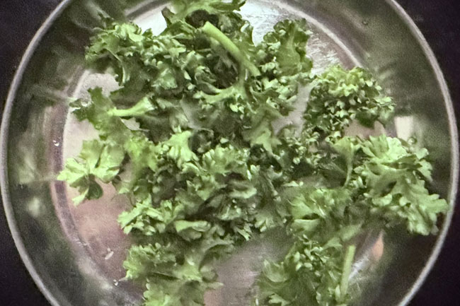 7./熱湯に塩を入れ、スパゲッティをゆでる。表示時間の1分前にスパゲッティをザルにあげ、フライパンに入れ、炒めるようにソースとからめ、先のパセリも合わせたのち、塩と胡椒で味を調え、盛り付ける。仕上げにすりおろしたパルミジャーノレッジャーノを散らして出来上がり。