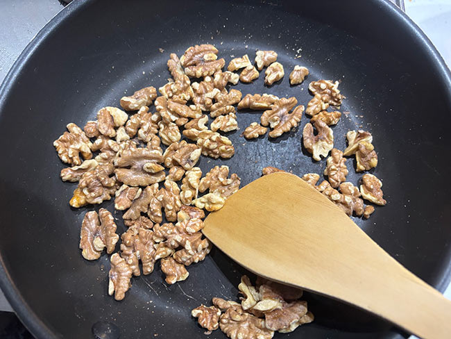 1./フライパンを中火弱にかけてくるみを焦げないように2分ローストする。