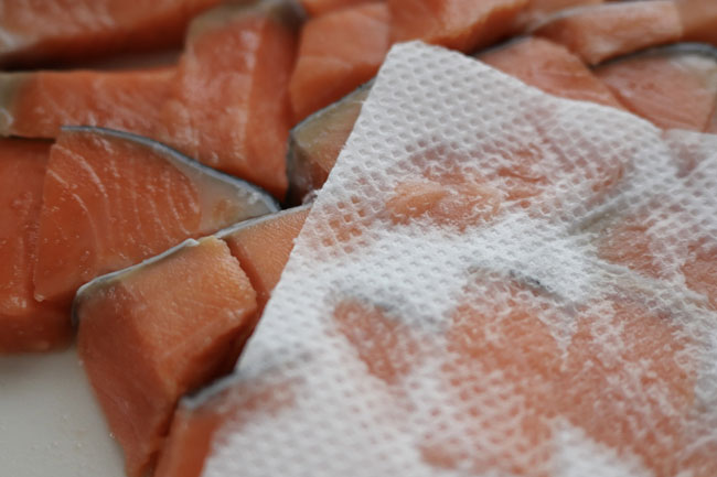 鮭は塩をして水分を取る