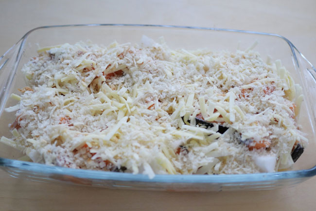 チーズとパン粉をたっぷりかける