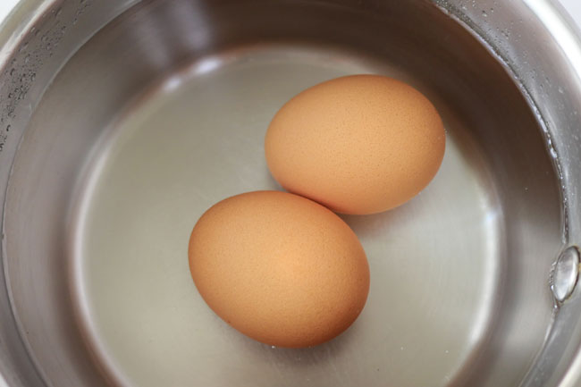 1./小鍋に湯を沸かして卵を入れ、約10分ゆでてゆで卵を作る。