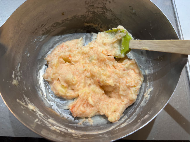 5./再び鍋を弱火にかけて、クリームチーズを加えて全体に馴染ませる。