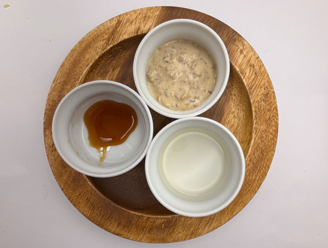 4./いぶりがっこタルタル・酢・ハチミツを合わせておく。