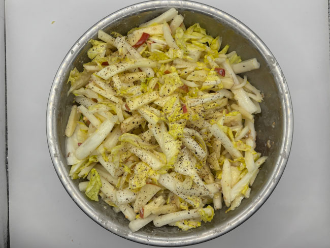 5./大きめのボウルに水気を切った白菜を入れ、リンゴを加え4で和える。