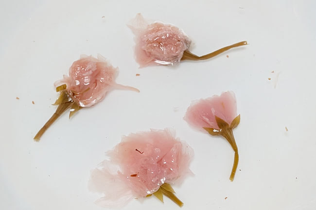 桜花を塩ごと水に浸ける