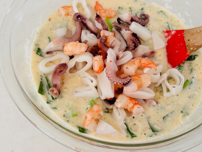 4./最後にシーフードを加えて全体を混ぜ合わせる。