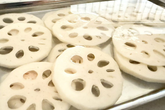 れんこんすべて酢水に浸かるように