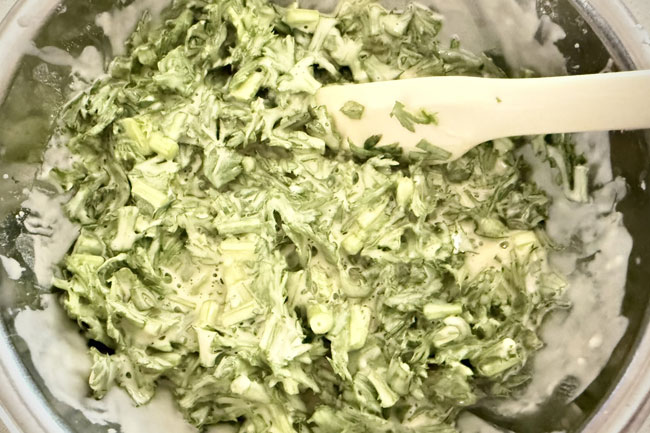 6./3の衣に、春菊を混ぜる。