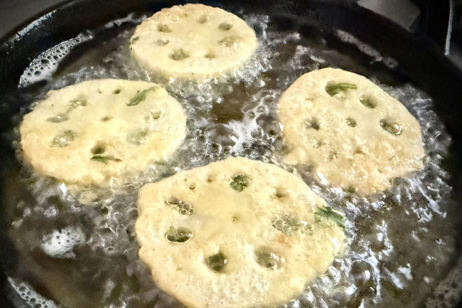 れんこんの春菊はさみジョンの作り方